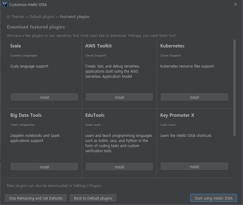 2. 이것 저것 사용할 IDEA에서 사용할 기능에 대해 선택합니다.