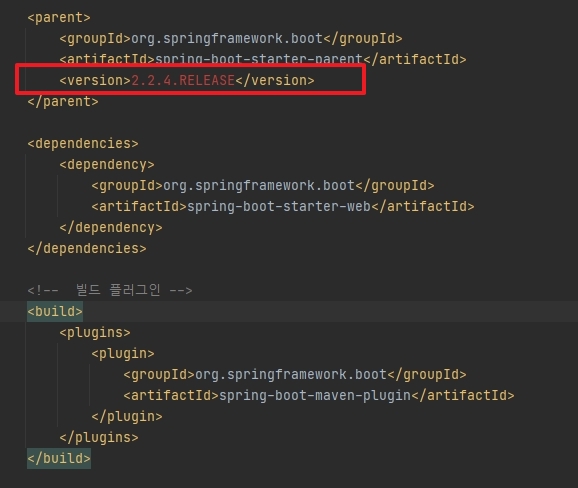 - 2.2.4.RELEASE 빨강색 오류남. ( pom.xml >> maven >> Reload Project 하면 사라짐. )