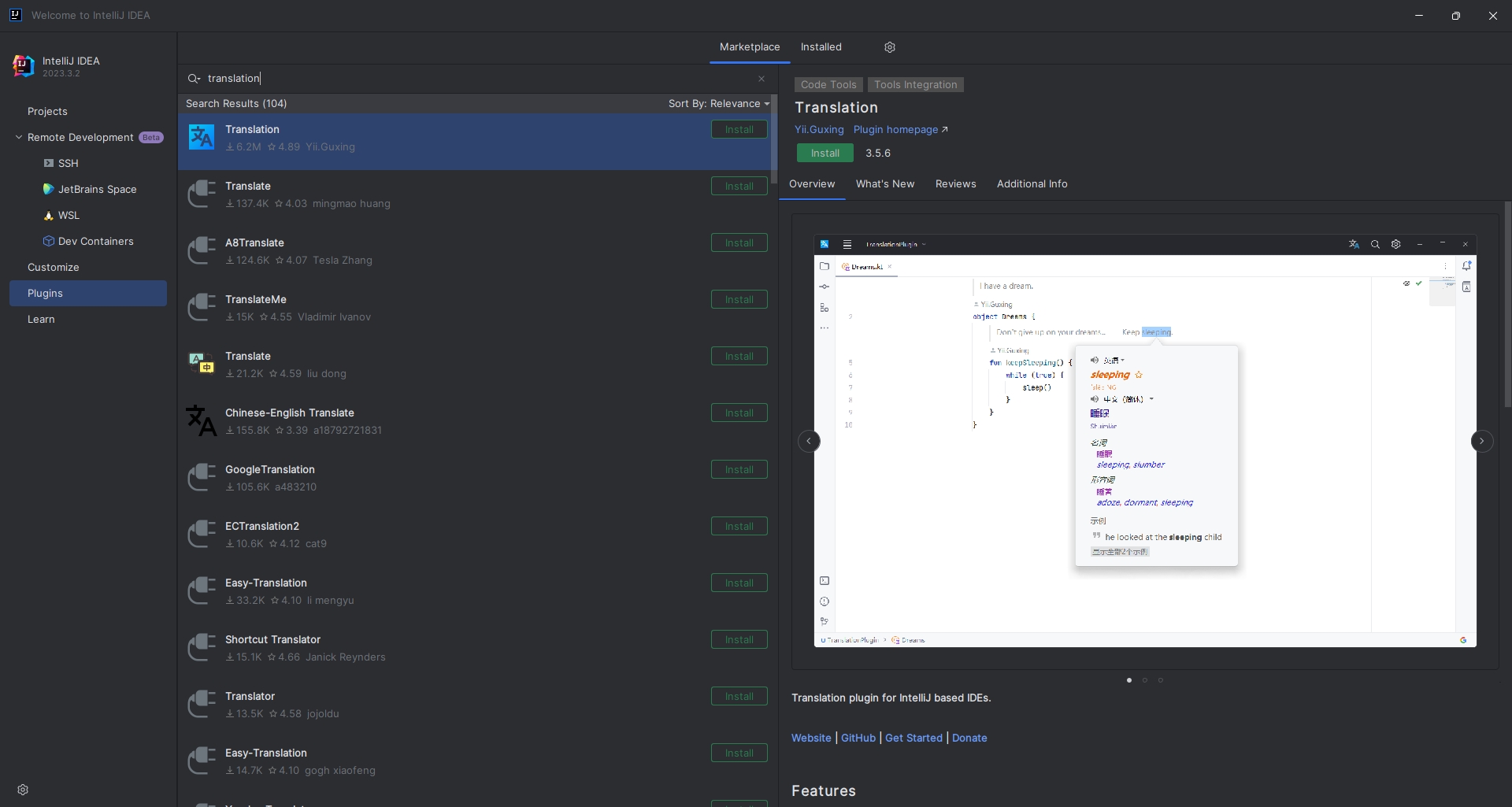 - https://plugins.jetbrains.com/plugin/8579-translation/