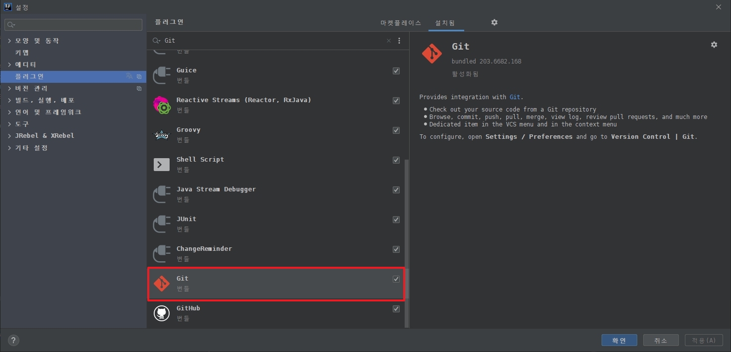 - IntelliJ 2020.x 버전에는 기본 번들로 설치되어 있습니다.