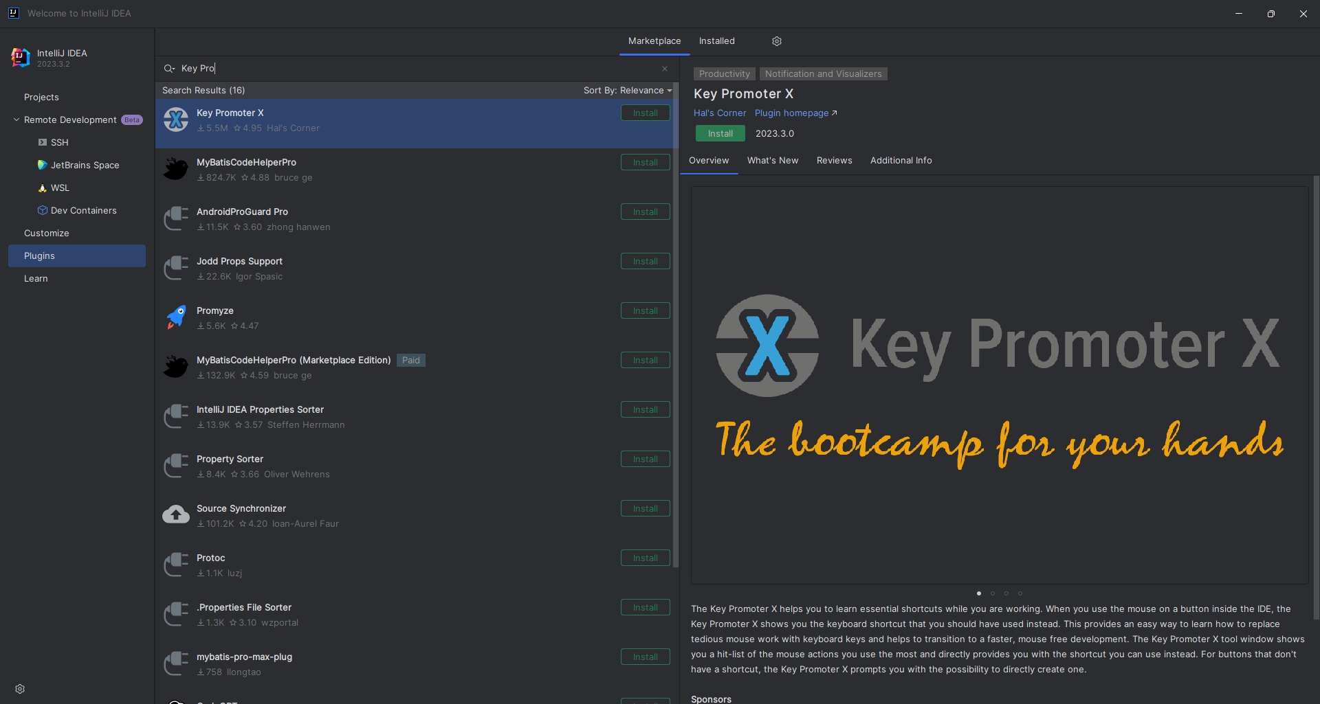 - https://plugins.jetbrains.com/plugin/9792-key-promoter-x