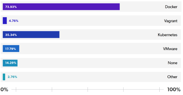 Docker 가 점유율이 가장 높으며 Kubernetes가 그 다음으로 점유율이 높습니다. 컨테이너 기술을 통한 MSA(Micro Service Architecture)로의 변화로 인해 앞으로도 계속 Docker, Kubernetes가 점유율이 높을 것으로 예상됩니다.