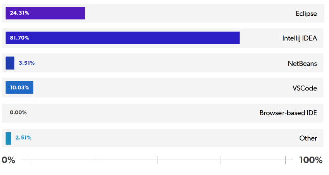 예상 밖으로 Eclipse가 아닌 Intellij IDEA가 상당히 높습니다. Intellij IDEA는 유료이기 때문에 사용 해본적은 없지만, 써본 개발자들을 통해서 들은 바로는 그만한 값어치를 한다고 합니다.