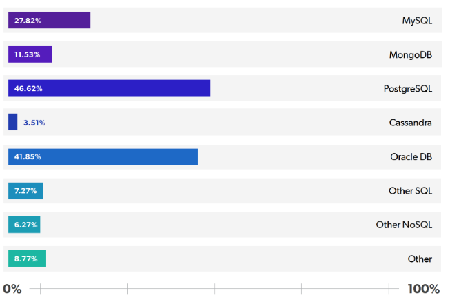 PostgreSQL이 47%, Oracle Database가 42%로 큰 차이가 없는 것으로 보입니다.