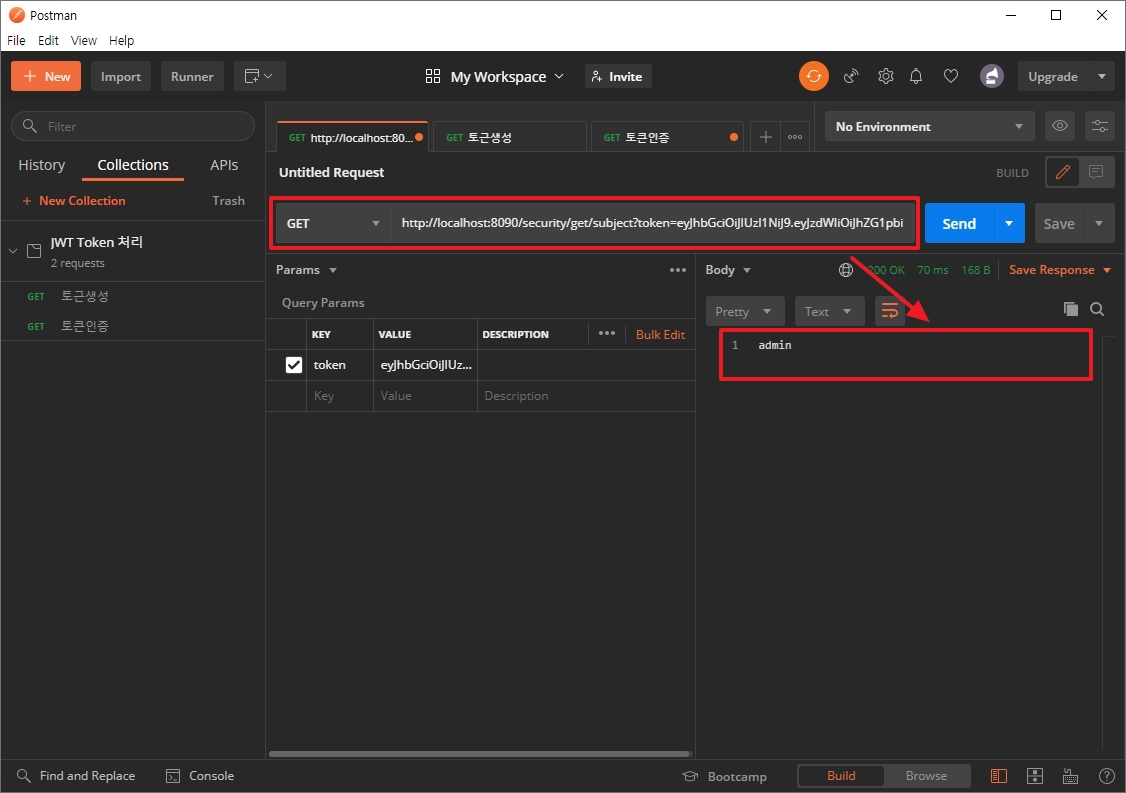 생성된 Token에 대해 확인 테스트