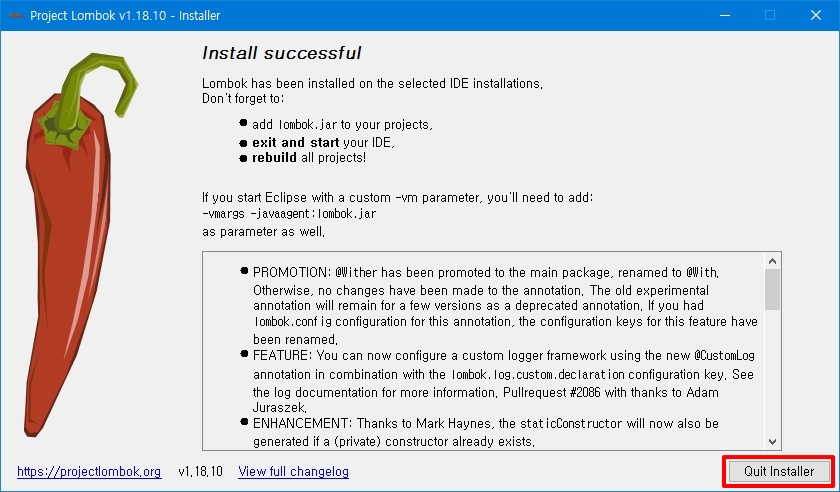 Lombok 다운로드 ( https://projectlombok.org/download )