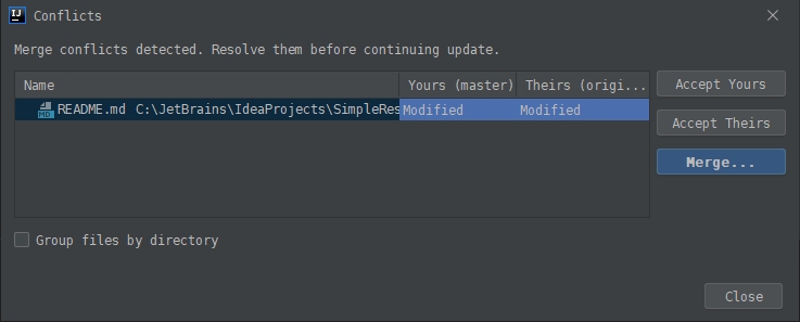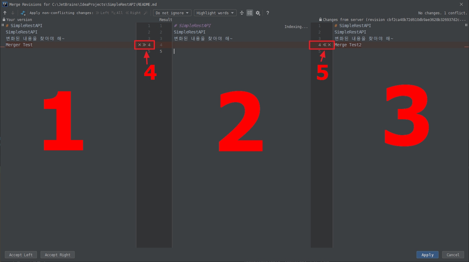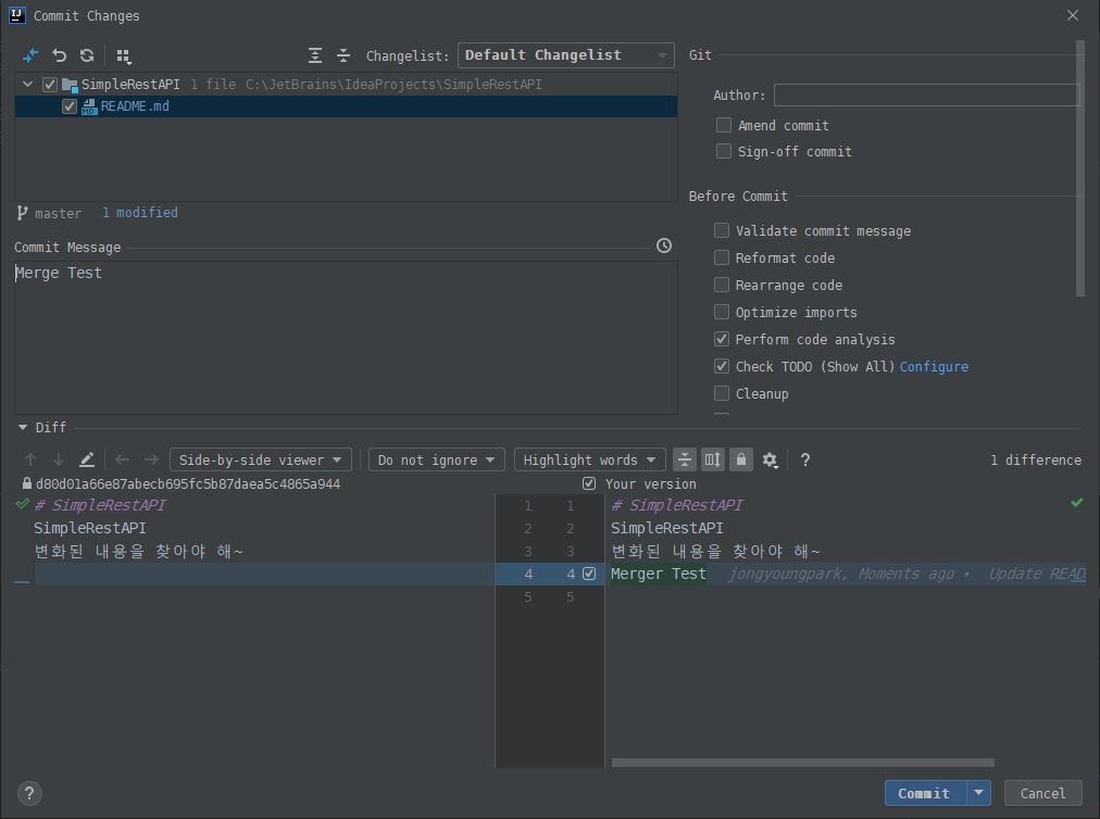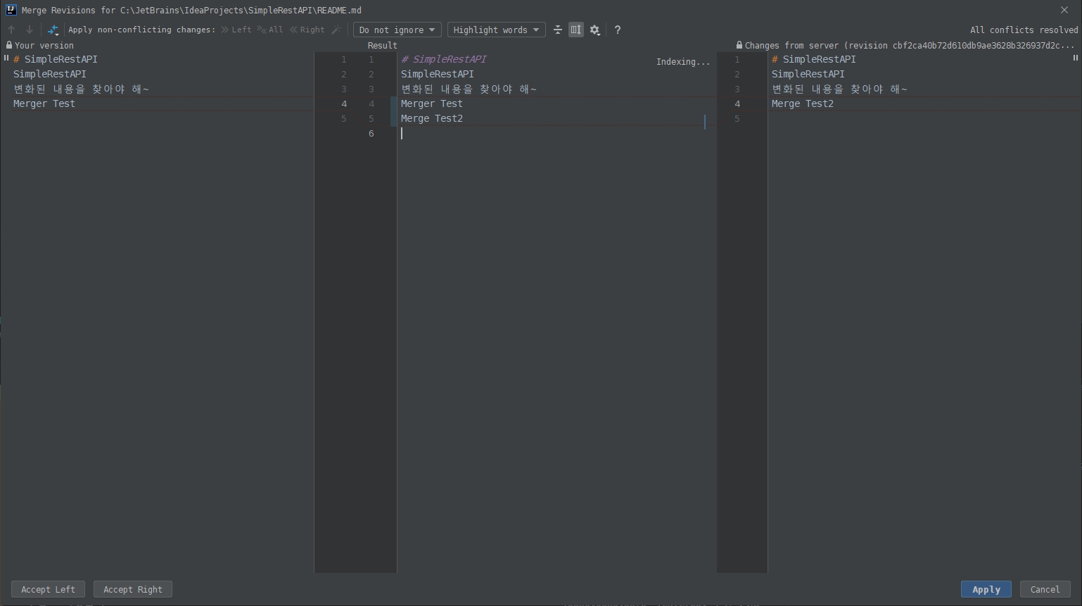 5. 역시 충돌이 났습니다. ( Merge 를 선택합니다. )