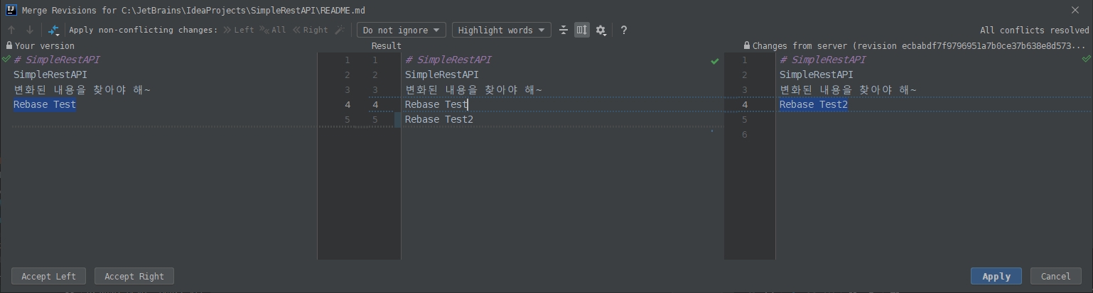 [IntelliJ] Git을 이용한 Merge, Rebase 본문