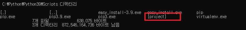 설치가 완료되면 Scripts 폴더 아래, project 폴더가 생성됩니다.