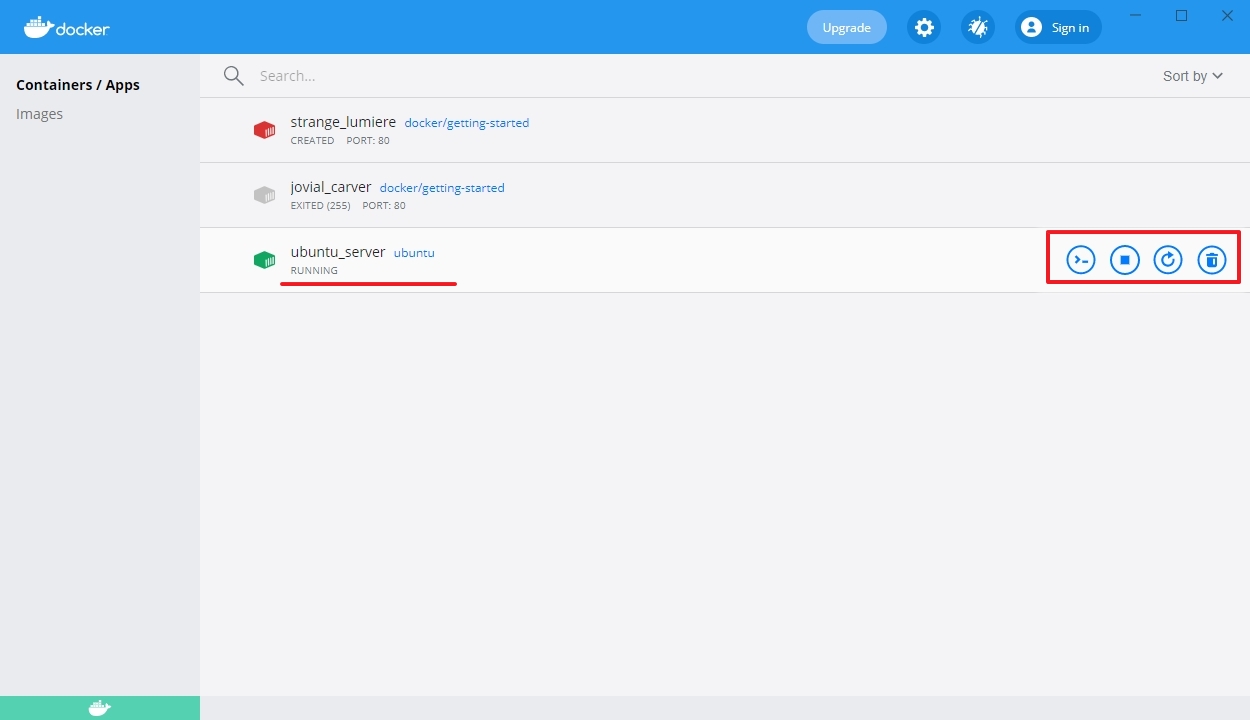 | PS C:\dockerImages> docker ps -a CONTAINER ID IMAGE COMMAND CREATED STATUS PORTS NAMES d5a728a31783 ubuntu "/bin/bash" 21 seconds ago Created ubuntu_server b3f6c4aea5ef docker/getting-started "nginx -g 'daemon of…" 23 hours ago Created strange_lumiere 96fd78b88620 docker/getting-started "nginx -g 'daemon of…" 23 hours ago Exited (255) 27 minutes ago 0.0.0.0:80->80/tcp jovial_carver |