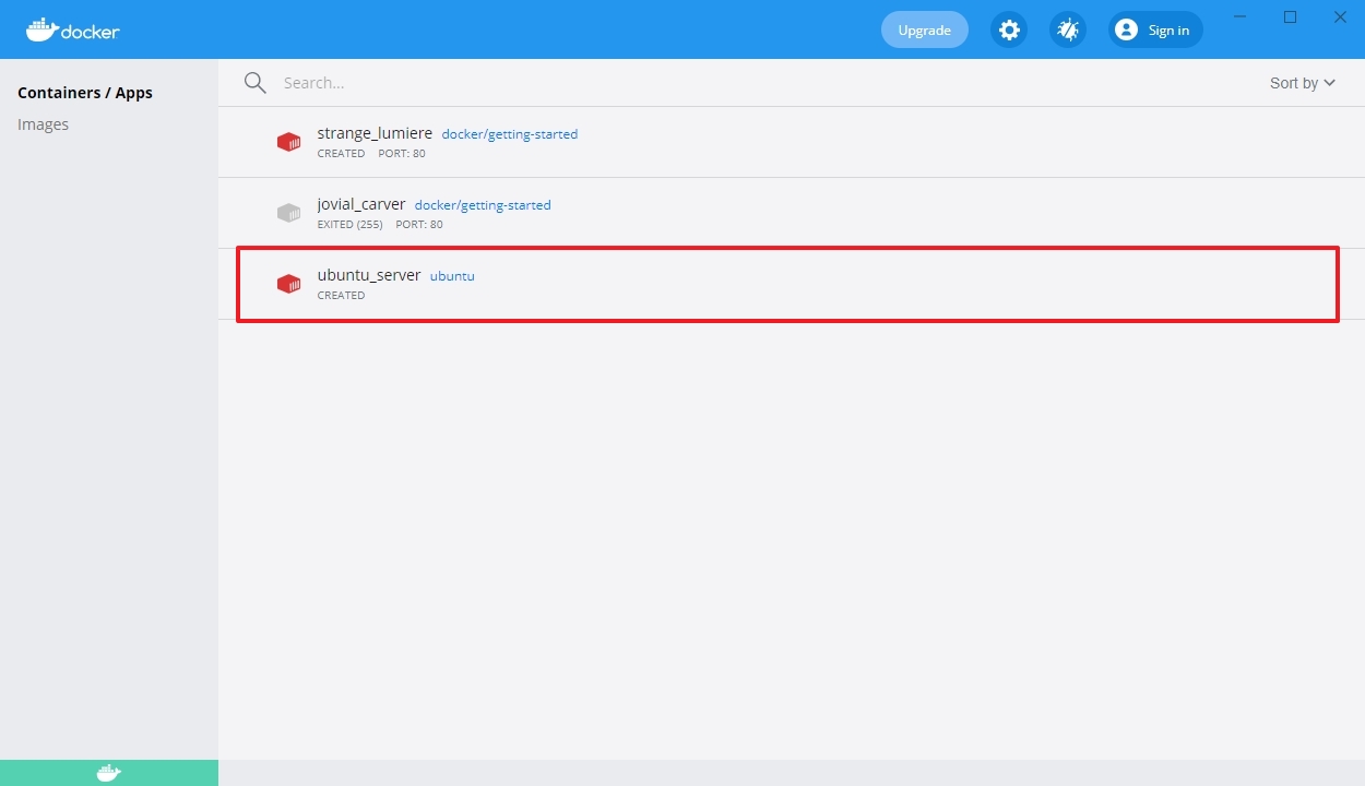| PS C:\dockerImages> docker start ubuntu_server ubuntu_server |