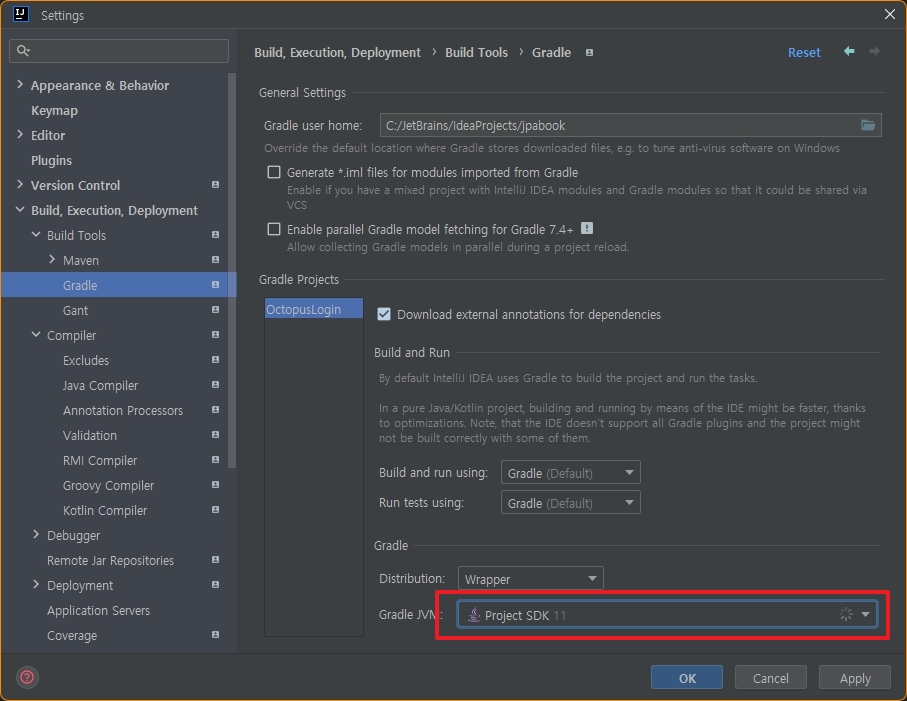 - Settings >> Build, Execution, Deployment >> Build Tools >> Gradle