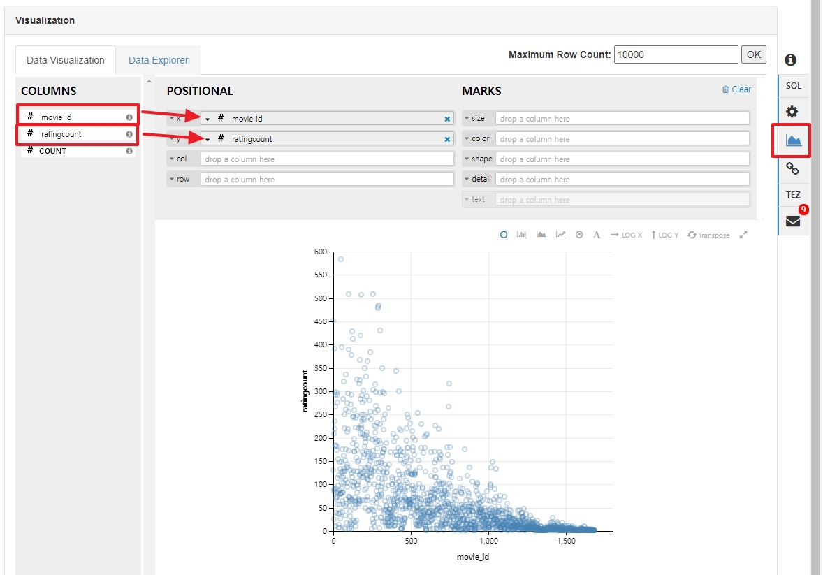 Upload Table > 파일선택 > u.data ( 관람객 데이터 ) 선택