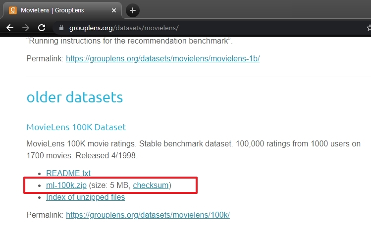 6. Moveielens 데이터 다운로드 ( https://grouplens.org/datasets/movielens/ )