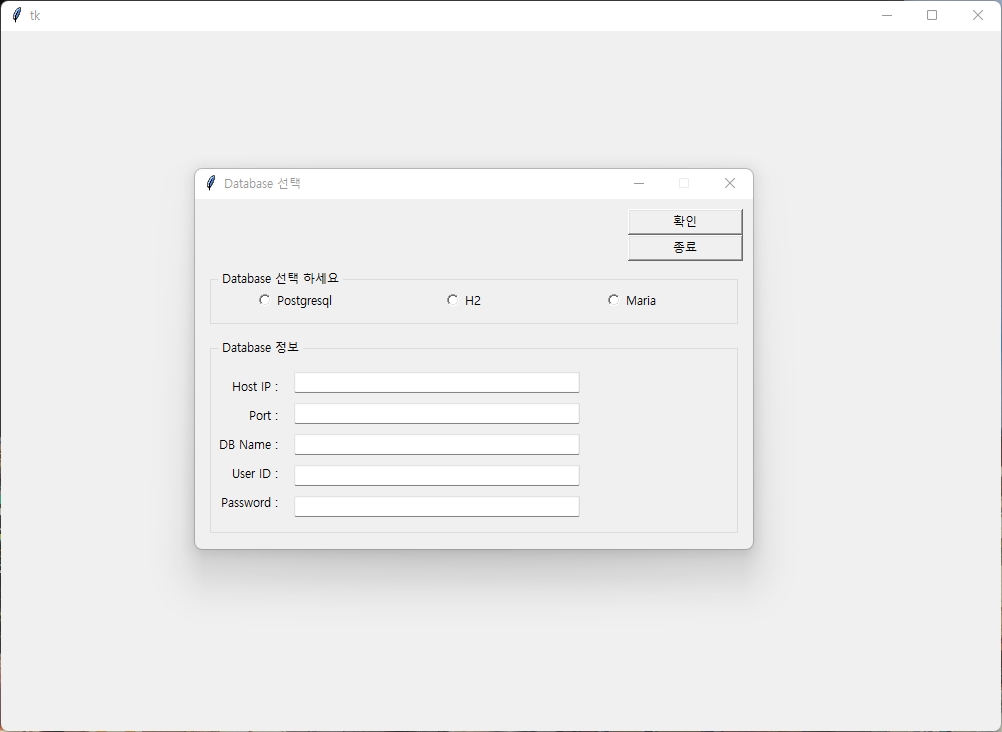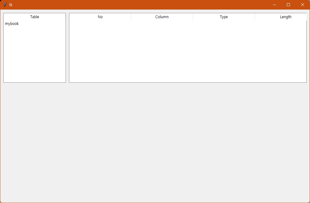 3. 메시지가 닫히면, 해당 Database 에 접속해서 Table 목록을 보여준다.