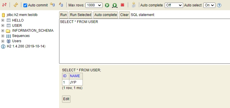 url: jdbc:h2:mem:testdb # h2 Database의 Default Database