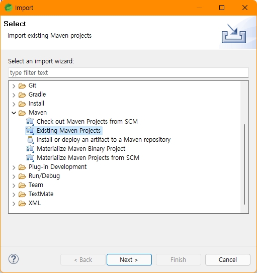 - [File] > [Import] > Maven > Existing Maven Projects