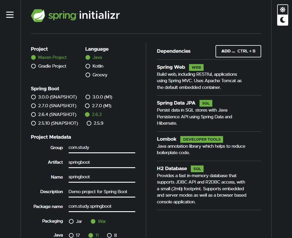 5. Spring 버전 : Spring Boot 2.6.3