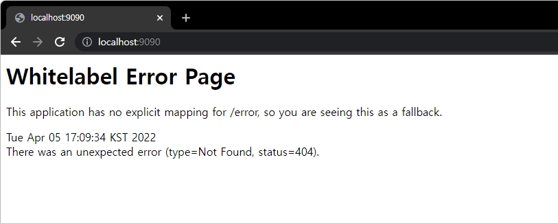 [2m2022-04-06 00:25:53.813[0;39m [32m INFO[0;39m [35m6744[0;39m [2m---[0;39m [2m[ main][0;39m [36mo.s.b.w.embedded.tomcat.TomcatWebServer [0;39m [2m:[0;39m Tomcat initialized with port(s): 9090 (http)