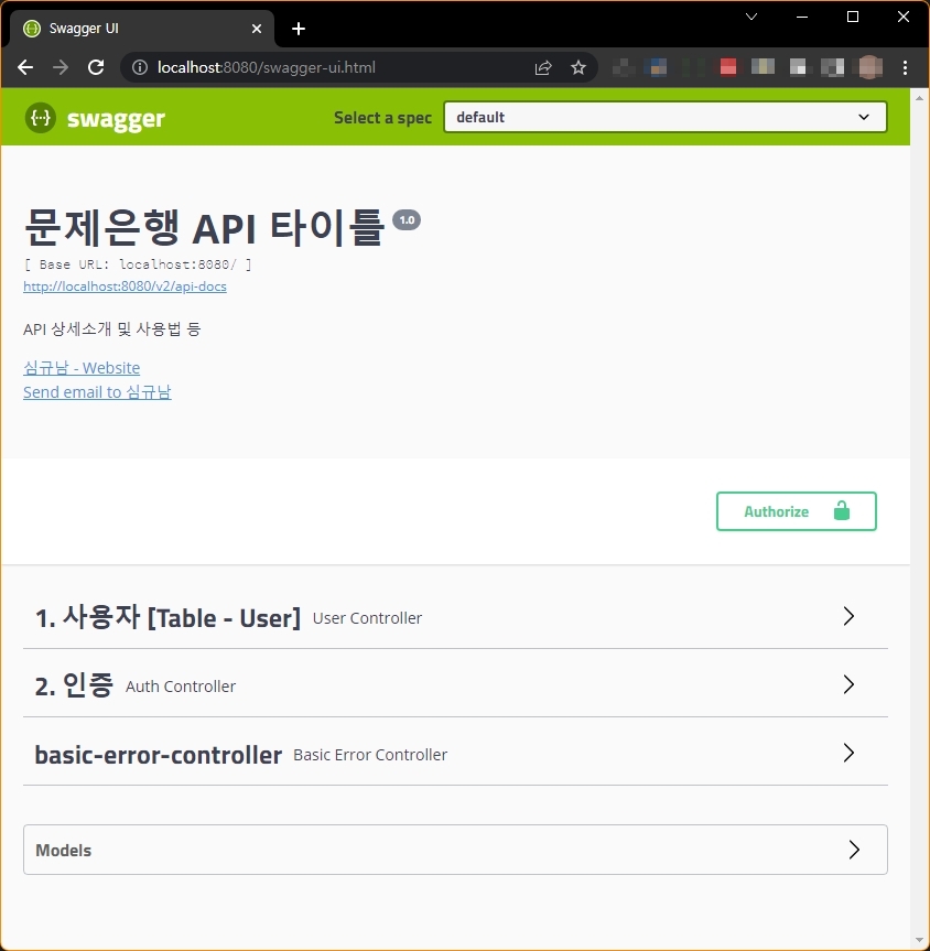 * Swagger2 버전은 http://localhost:8080/swagger-ui.html