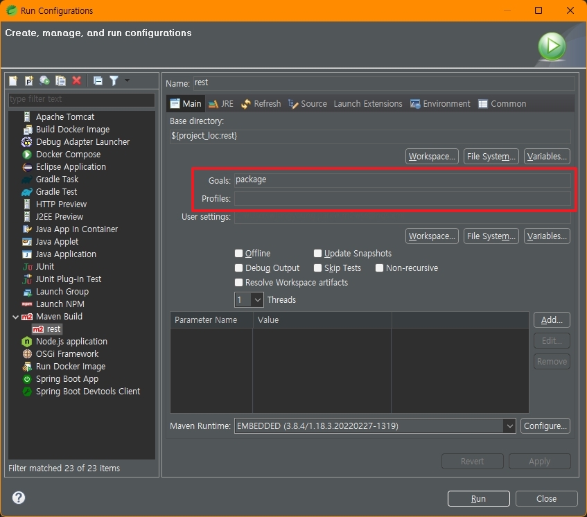 2. Run Configurations 설정