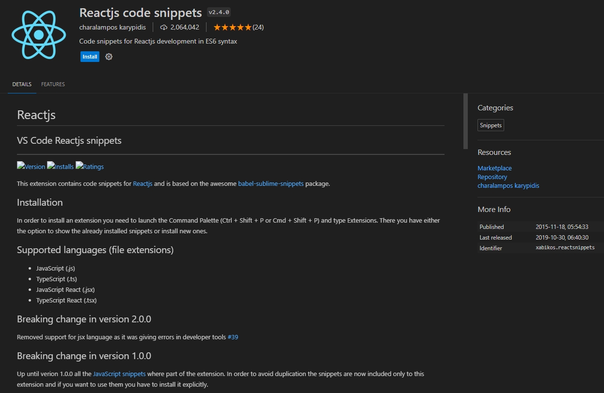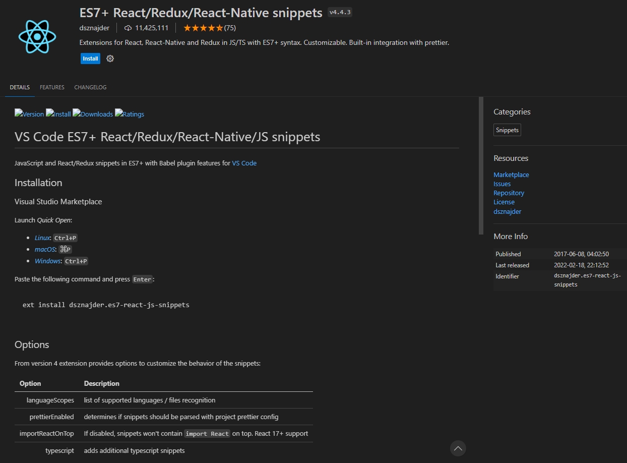 - ES7 + React/Redux/React-Native snippets