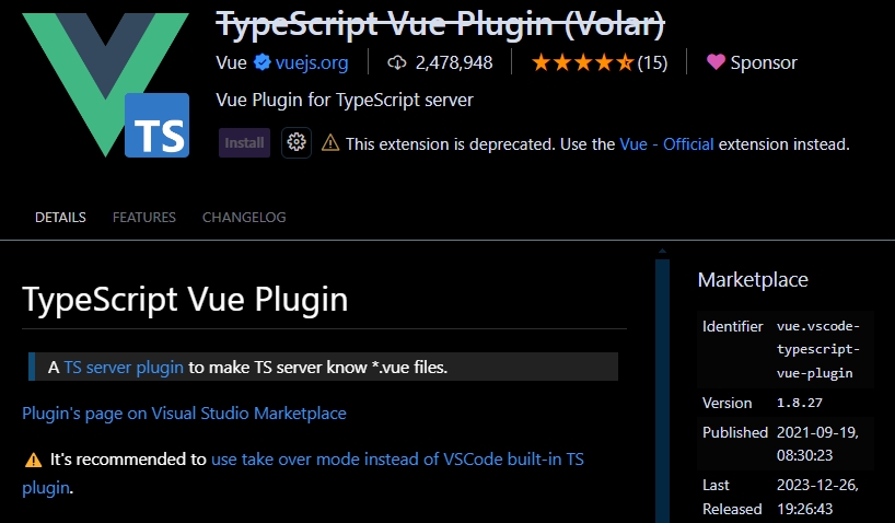 : TypeScript Vue Plugin ( Volar : Vue 3.x 에서 사용 ) 가 없으면...