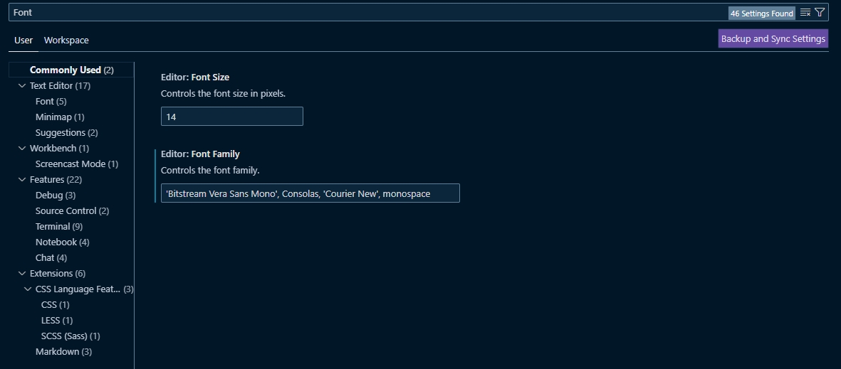 Commonly Used > Font Family