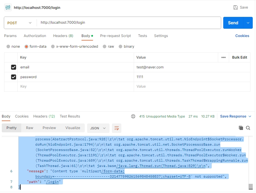 [Exception] Status Code : 415 "Unsupported Media Type" 본문