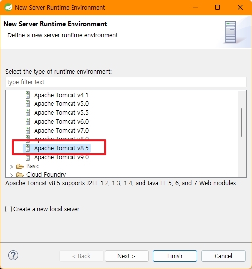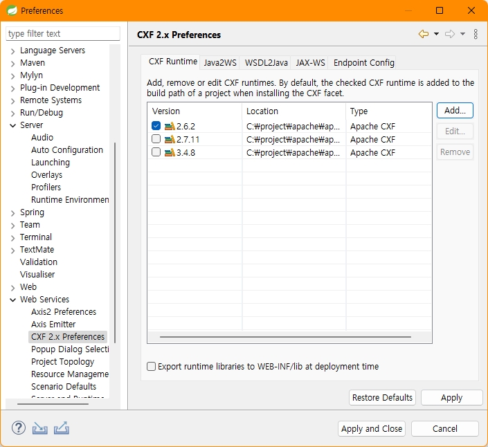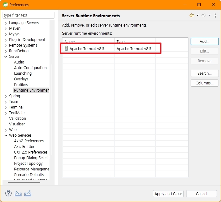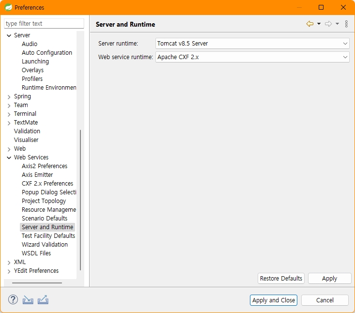 Web Service > Server and Runtime 확인