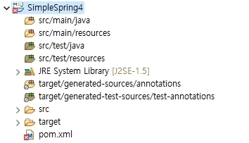 3. SimpleSpring4 프로젝트 > Properties > Java Build Path > Libraties > J2SE-1.5 > Remove