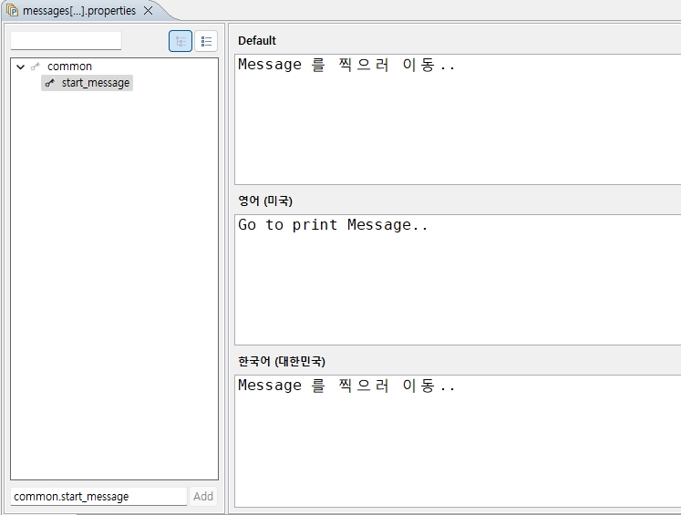 logger.info("ko_KR : " + messageSourceAccessor.getMessage("common.start_message", Locale.KOREA));
