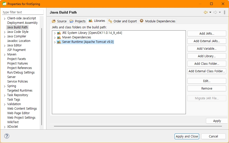 6. Project 를 선택 ( Alt + Enter ) > Properties > Java Build Path >> Add Library