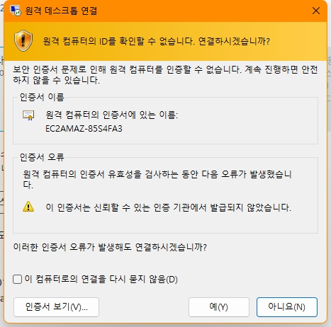 10. rdp 파일 실행 - 원격 데스크톱 연결