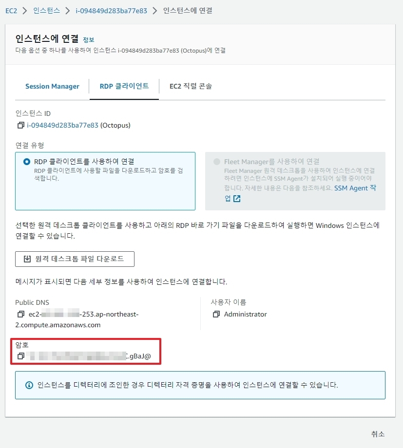 11. 암호 - 암호는 인스턴트 연결 화면에서 찾아야 합니다. ( 8. RDP 클라이언트 참조 )