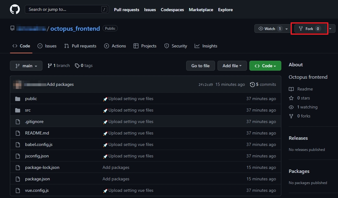 1. 가져오고 싶은 Repository 에서 Fork 를 선택합니다.