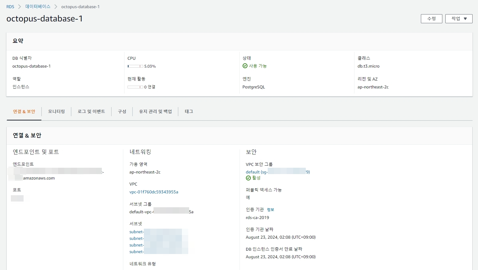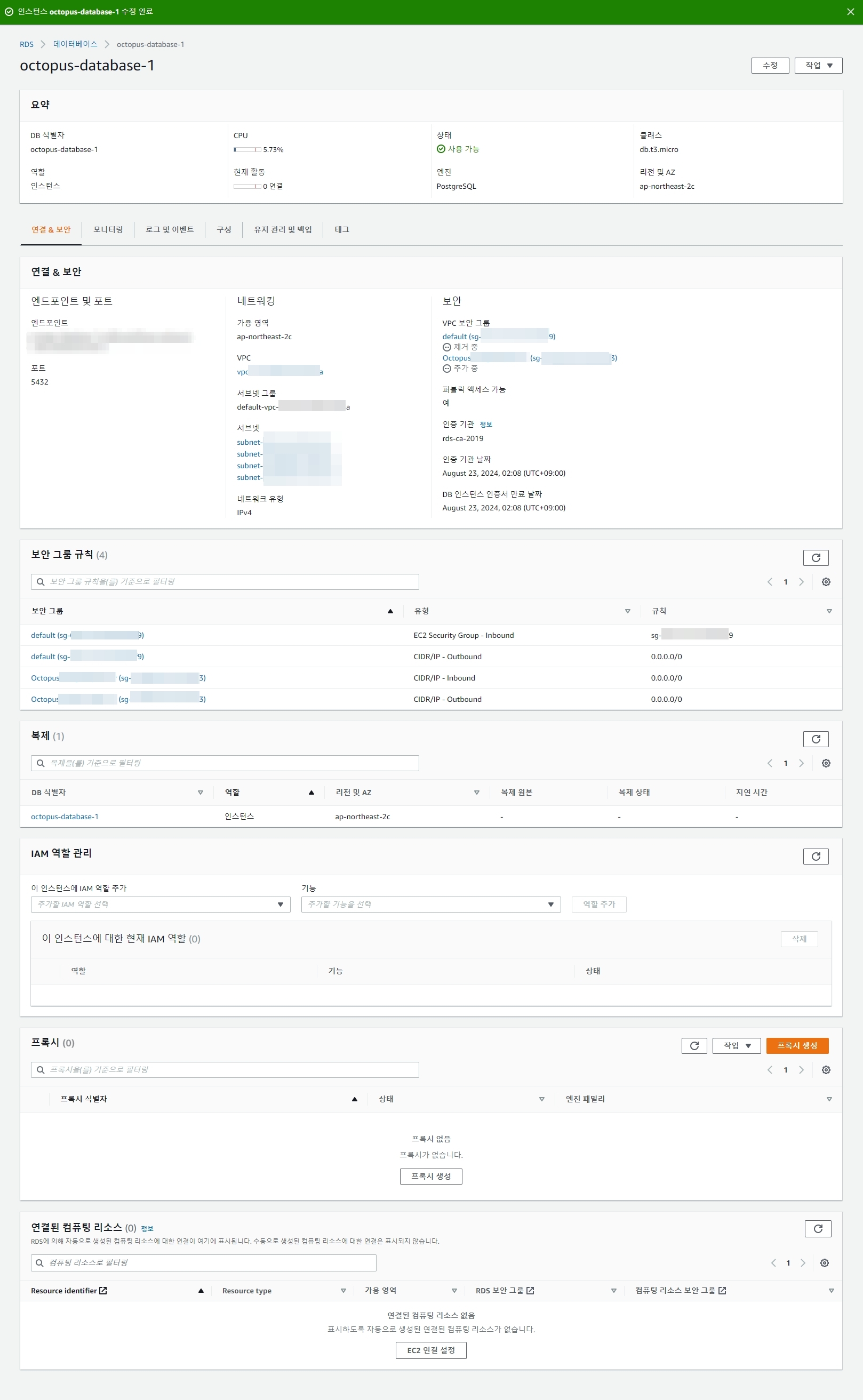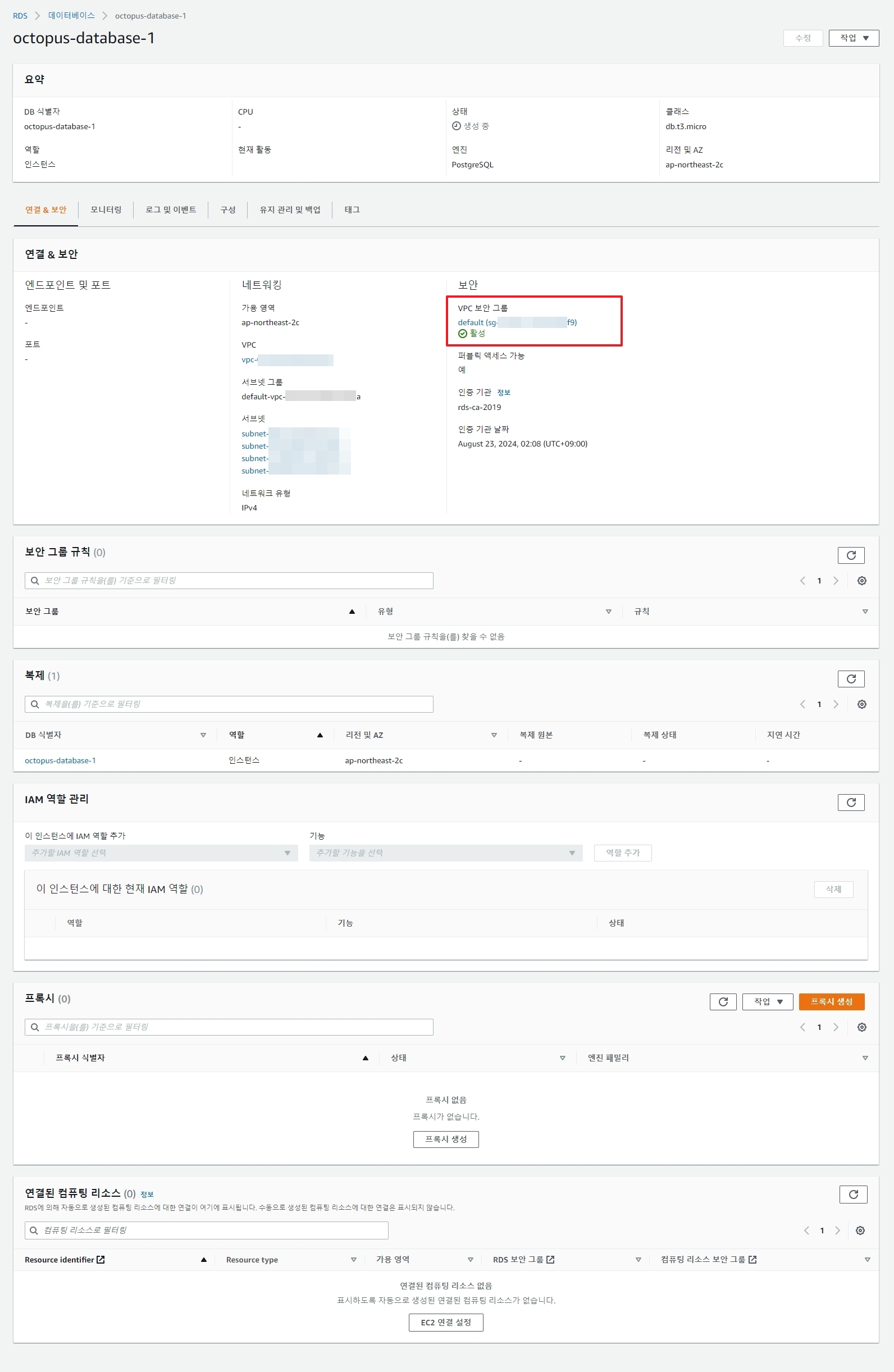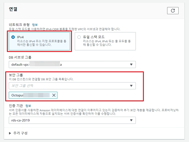 12. 생성된 데이터베이스 정보 > 보안그룹 상세 선택