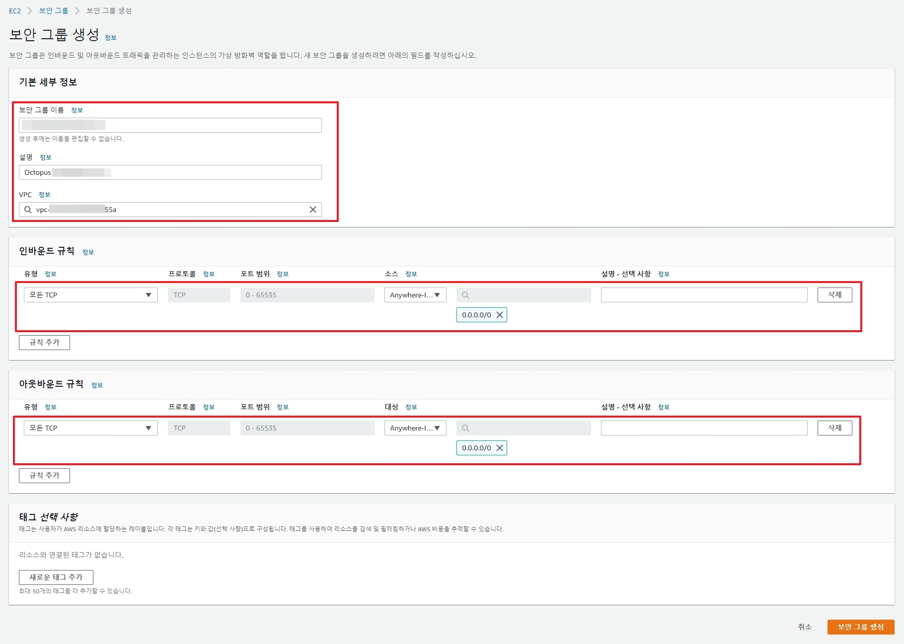 13. 보안그룹 상세 >> 보안 그룹 생성