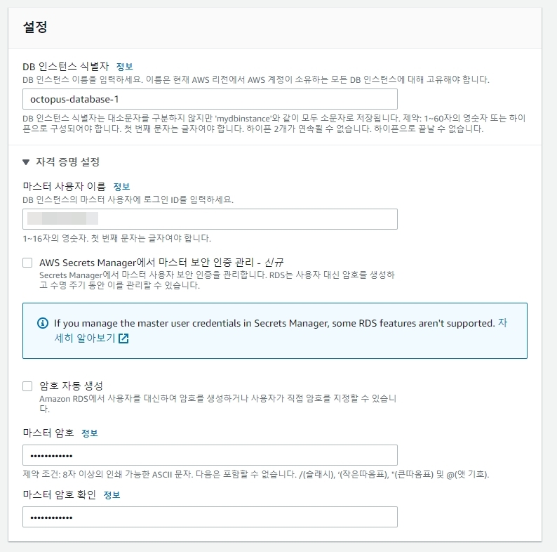 7. 데이터베이스 생성 >> DB 인스턴스 식별자 등록