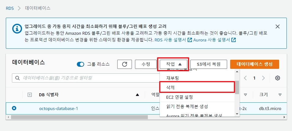 RDS를 SnapShot을 받아두고, 삭제해야 과금이 되지 않는 모양입니다.
