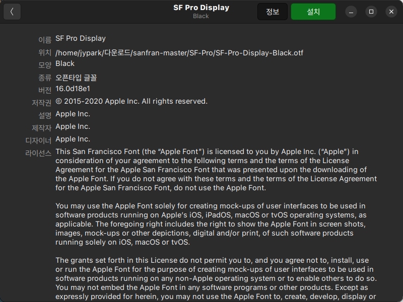 Apple 폰트인 San Francisco 폰트를 다운받았습니다.