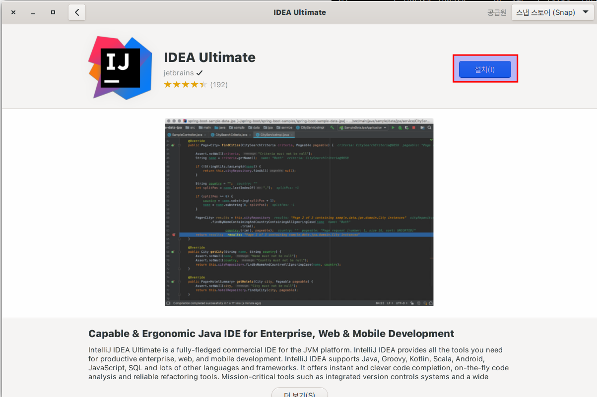 Ubuntu에 IntelliJ 를 설치 했습니다.