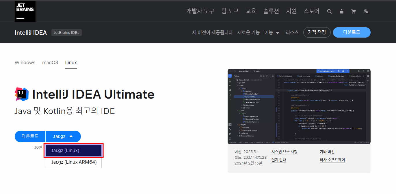 https://www.jetbrains.com/ko-kr/idea/download/?section=linux