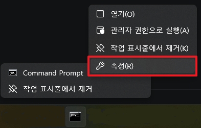2. 바로가기 컴멘드 창 오픈시 실행