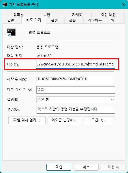 Windows alias/단축 커맨드 설정하기
