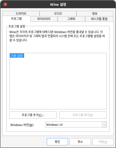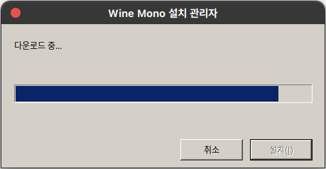 Winecfg는 화인의 설정창을 띄는 명령입니다. 이때 Wine Mono가 설치됩니다.