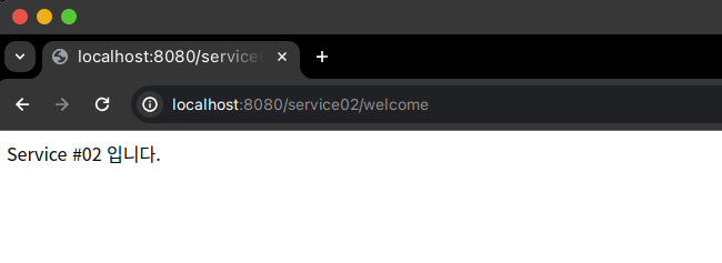 - http://localhost:8081/service01/welcome 를 Gateway를 통해서 http://localhost:8080/service01/welcome 를 접속해도 같은 Uri로 이동할 수 있게 됩니다.