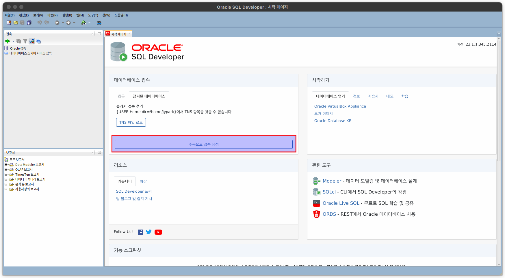 sqldeveloper (23.1.1-346.2114) 설정하는 중입니다 ...
