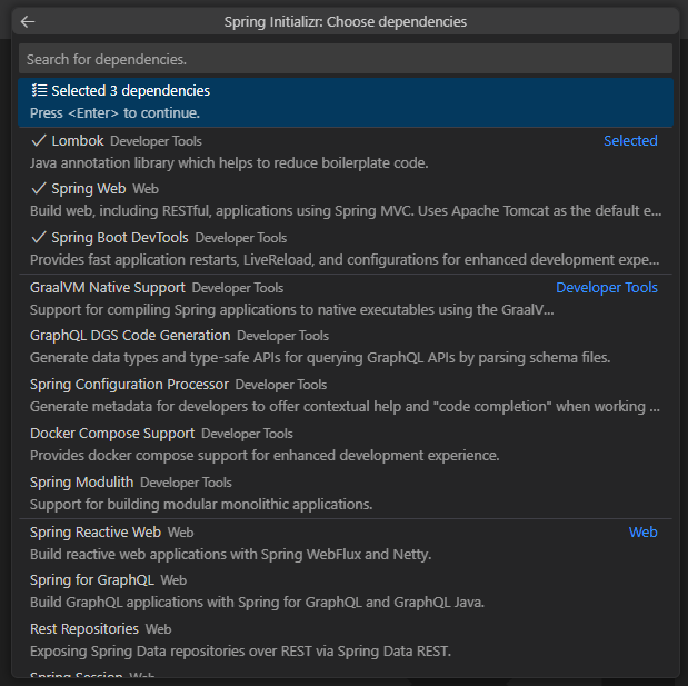 - Dependencies 선택