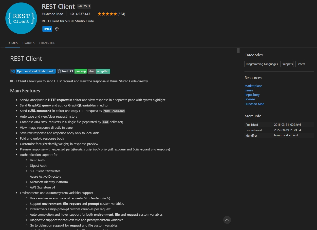 - REST Client ( 사용법 : https://marketplace.visualstudio.com/items?itemName=humao.rest-client )